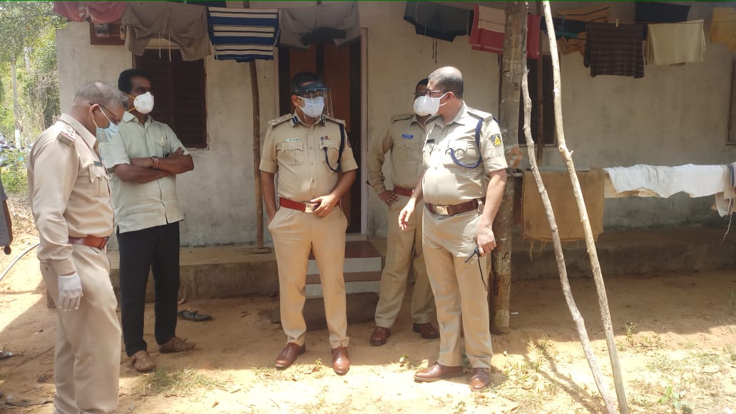 | City police chief Dr P S Harsha at the murder spot in Yelinje |