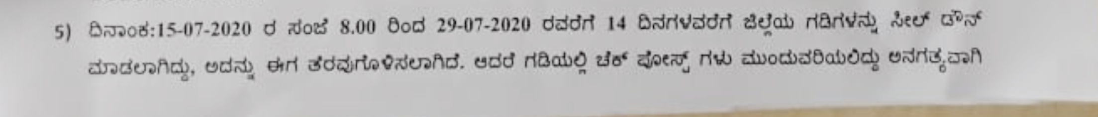 “The border seal down which was scheduled from July 15 to July 29 has been relaxed. However the checkposts would continue in the borders,” the order issued by Deputy Commissioner G Jagadeesh says.