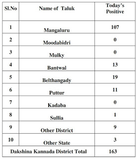 Mangaluru, Aug 02: Dakshina Kannada district recorded 163 new cases and 10 deaths on Sunday. The district crossed the 6,000 mark today as the total number has touched 6,015.