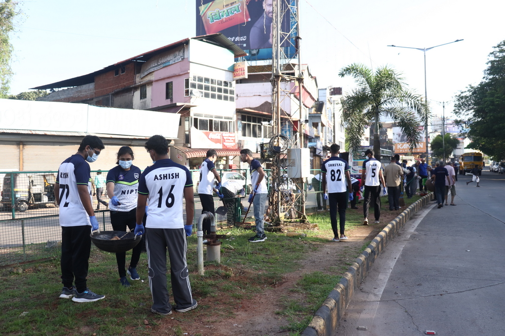 Under the leadership of Captain Ganesh Karnik, a dedicated team including Ashok Subbiah, Rajendra, Naveen Kumar, Purushottam, Rupesh, Anand Kulal, Shivaram, and Satyanarayana K.V. cleaned the Clock Tower circle and the footpath around the Mini Vidhana Soudha. Another group, guided by senior volunteer Kamalaksha Pai, cleared dividers and footpaths from Clock Tower up to Hampankatta Circle.