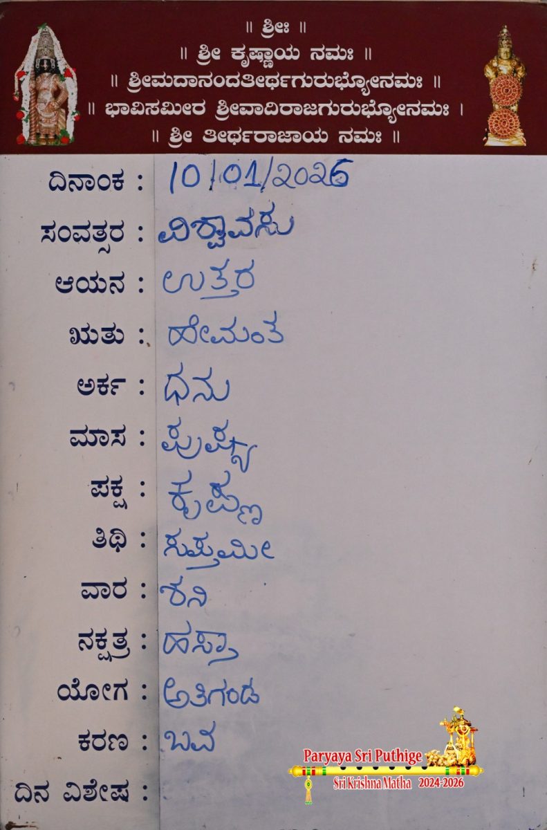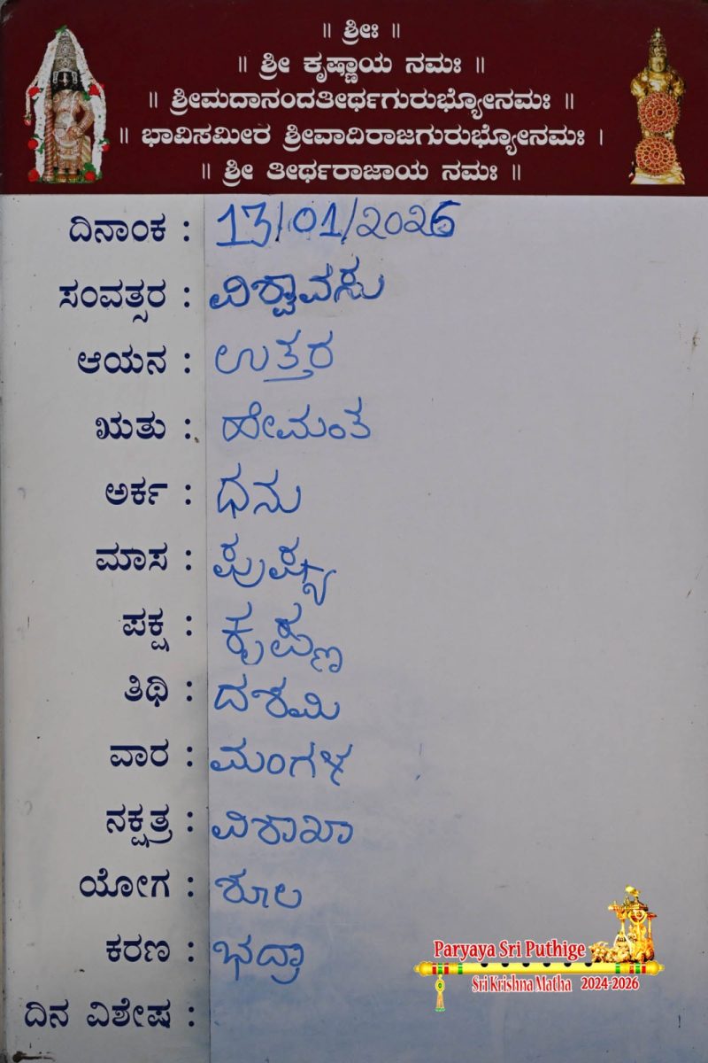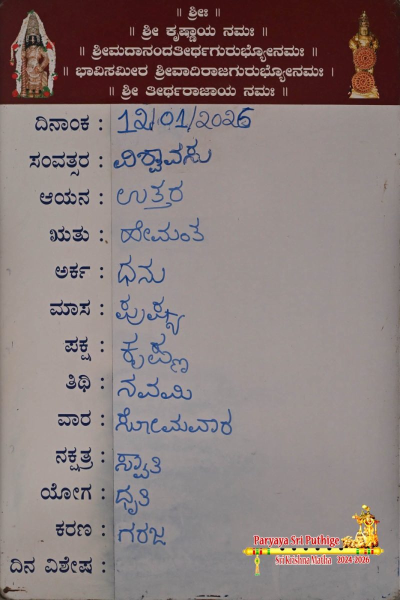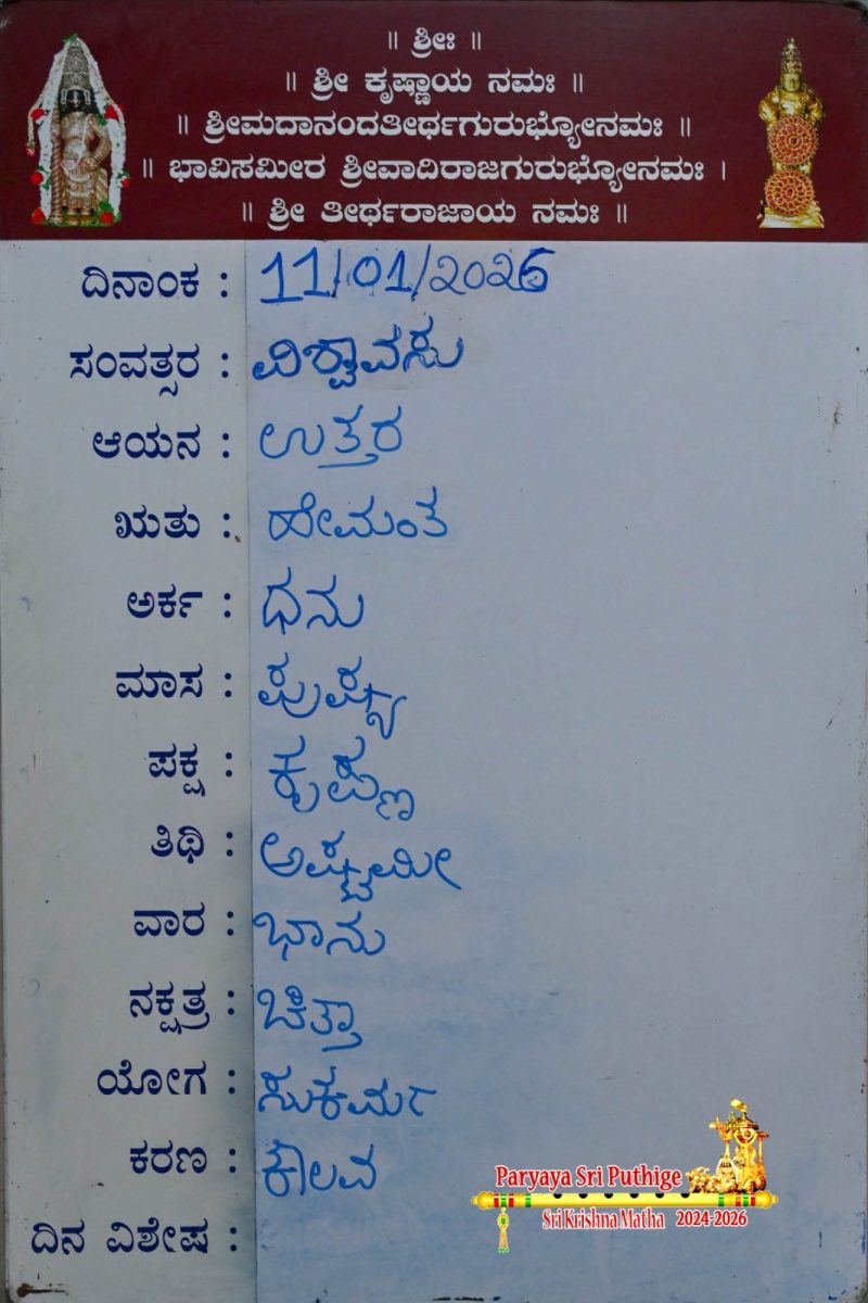 Jan 18: First Day Pooja by Paryaya Shirooru Swamiji: Vajra Kavacha Alankara