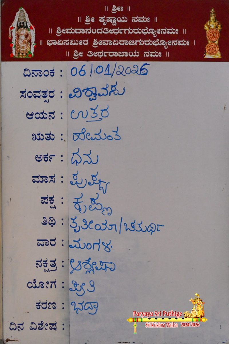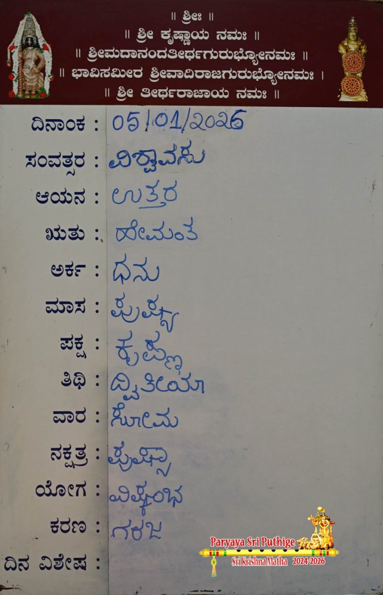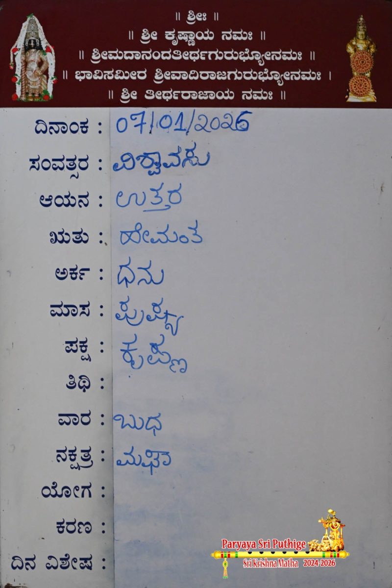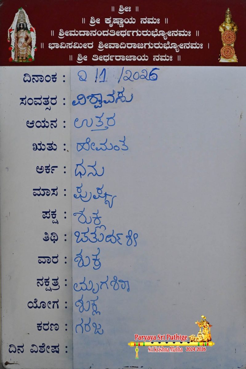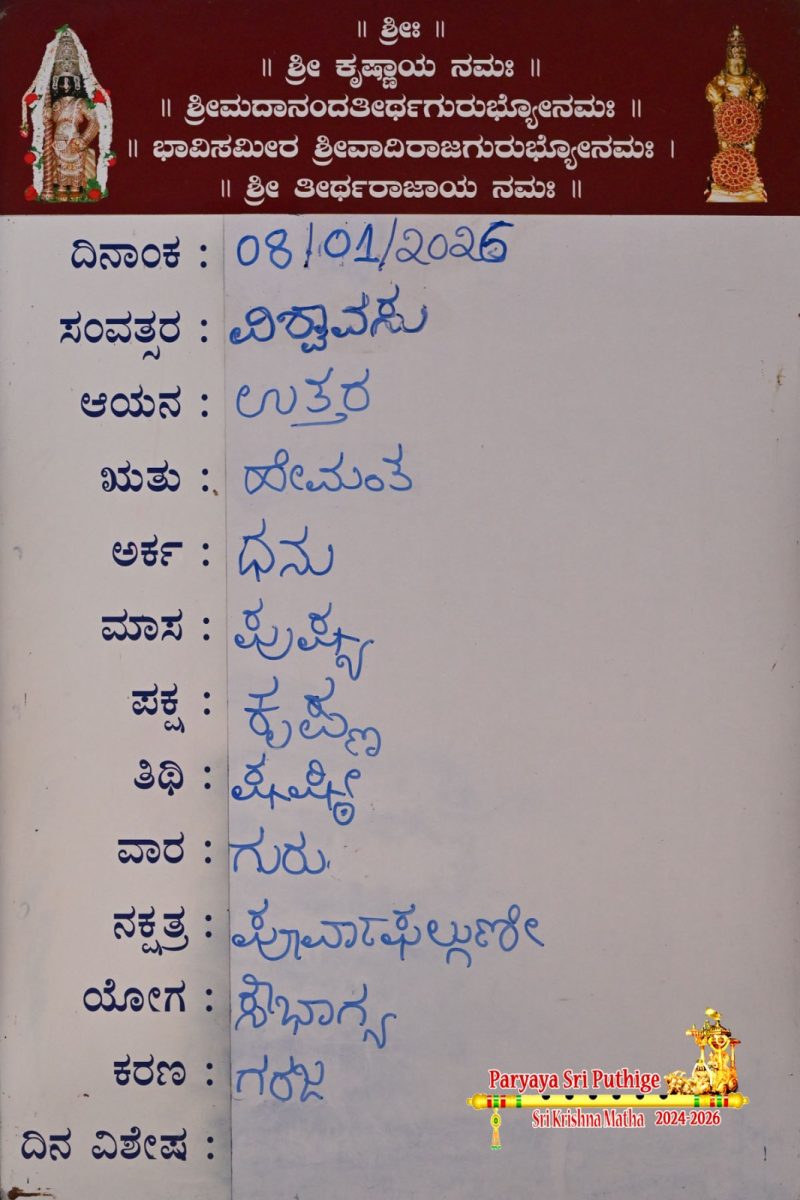 Jan 18: First Day Pooja by Paryaya Shirooru Swamiji: Vajra Kavacha Alankara